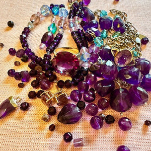 You'll feel like royalty wearing this beautiful amethyst bracelet. It shimmers, delights and is February's birthstone. Metal is gold filled over sterling silver, seed beads...are also added.