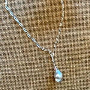 Baroque pearls are all the rage today. Add to that a tiny pink opal that orbits the top of the pearl, they shine together! This...pendant found a home on the desired sterling silver paper clip chain that measures 16" in length (40.5 cm). Speaking of length, please order this in any length that works for you! At CaraLux, our handmade gemstone jewelry is made with quality products and original designs, offering you a touch of luxury at an affordable price.