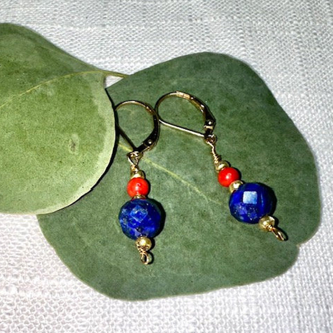 Discover elegance with our Lapis Lazuli and Coral Earrings, available exclusively at CaraLux. A classic combination of lapis lazuli and coral for a simple pair...of earrings that define timeless sophistication. Expertly handcrafted with quality gemstones, these earrings offer a touch of luxury at an affordable price. Wear them alone or choose a matching necklace and/or bracelet from CaraLux! Embrace our commitment to original designs and craftsmanship, enhancing your jewelry collection with unparalleled style.