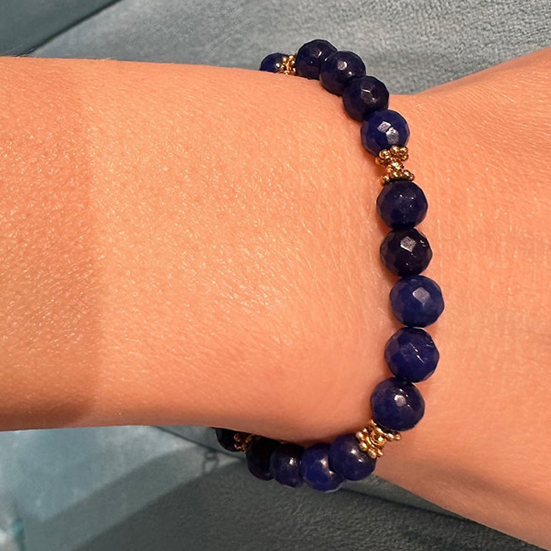 Lapis Lazuli has been used for personal decoration since civilization began, adorning both individuals and masterpieces like Van Gogh’s "Starry Night" with its deep blue...hue. Our Lapis Lazuli bracelet, available exclusively from CaraLux, seamlessly blends the historical significance of this gemstone with contemporary elegance. Gold highlights are added with vermeil Bali beads, then finished with 14K gold-filled findings, ensuring each piece is both luxurious and affordable. Our handmade gemstone jewelry is crafted with quality materials and original designs, providing a touch of timeless beauty and sophistication. Enjoy a bit of luxury, at an affordable price, only at CaraLux Creations.